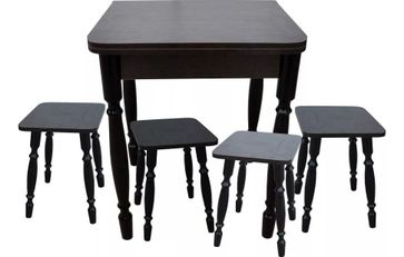 Комплект СМ ДСП 60х60 венге станет основой интерьера Вашей кухни или столовой комнаты. В составе набора раздвижной квадратный стол и четыре табурета, выполненные в едином стиле и цветовом решении. Мебель производится из качественных материалов - ламинированная ДСП и массив березы. Цвет набора венге. В составе комплекта: Стол ломберный раскладной 60х60 ДСП венге Табурет ДСП венге 4 шт. None Есть доставка.