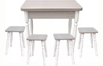 Комплект СМ ДСП 60х80 ясень станет основой интерьера Вашей кухни или столовой комнаты. В составе набора раздвижной прямоугольный стол и четыре табурета, выполненные в едином стиле и цветовом решении. Мебель производится из качественных материалов - ламинированная ДСП и массив березы. В составе комплекта: Стол ломберный раскладной 60х80 ДСП ясень Табурет ДСП ясень 4 шт. None Есть доставка.
