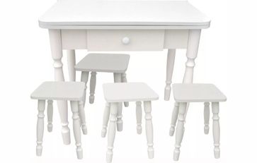 Комплект СМ ДСП ящик 60х80 белый станет основой интерьера Вашей кухни или столовой комнаты. В составе набора раздвижной прямоугольный стол с выдвижным ящиком и четыре табурета, выполненные в едином стиле и цветовом решении. Мебель производится из качественных материалов - ламинированная ДСП и массив березы. В составе комплекта: Стол ломберный раскладной с ящиком 60х80 ДСП белый Табурет ДСП белый 4 шт. None Есть доставка.