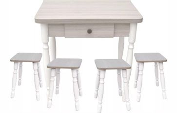 Комплект СМ ДСП ящик 60х80 ясень станет основой интерьера Вашей кухни или столовой комнаты. В составе набора раздвижной прямоугольный стол с выдвижным ящиком и четыре табурета, выполненные в едином стиле и цветовом решении. Мебель производится из качественных материалов - ламинированная ДСП и массив березы. В составе комплекта: Стол ломберный раскладной с ящиком 60х80 ДСП ясень Табурет ДСП ясень 4 шт. None Есть доставка.