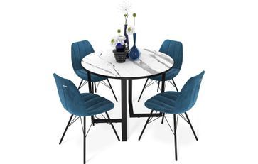 Для совместных трапез - готовый обеденный комплект с удобными стульями. Можно выбрать другие цвета стульев и стола. В комплект входит один стол: - SHT-T41 100-140 В комплект входит четыре стула: - каркас S37 - сидение ST29-C1 ЭРГОНОМИЧНАЯ КОНСТРУКЦИЯ Изделие оснащено простым раздвижным механизмом бесцаргового типа. В собранном виде по центру столешницы имеется стыковочный шов. Выдвижную часть необходимо хранить отдельно. Для того, чтобы разложить стол, нужно: 1.Раздвинуть в стороны обе половинки столешницы. 2. Затем достать центральную часть и вставить ее в пазы. 3. После чего сдвинуть назад боковые половинки до характерного щелчка. Это значит, что все части конструкции зафиксировались в правильном и неподвижном положении. При таком способе раскладки длина сола меняется с круглой на овальную и увеличивается от 1000 мм до 1400 мм. ПРОЧНОСТЬ И ДОЛГОВЕЧНОСТЬ Прочная столешница из МДФ 22 мм со слоем декоративного пластика HPL 1,2 мм. Надежное металлическое основание окрашено порошковой краской, устойчивой к механическому воздействию. Каркас выполнен из трубы 50х25 мм толщиной 1,2 мм. В сложенном состоянии стол умещает 4 человека, а в разложенном до 6 человек. Выдерживает продолжительные нагрузки - максимальная статическая нагрузка до 50 кг. ДИЗАЙН И ЭСТЕТИКА Необычный дизайн ножек не только добавляет в интерьер ломаных линий, но и позволяет сэкономить пространство для ног. Выпуклый рисунок натурального камня на столешнице отлично дополнит классический интерьер обеденной зоны. Мягкое сидение модного оттенка сшито из микровелюра. Данный материал гиппоалергенный, экологичный, мягкий и приятный на ощупь, при этом очень прочный, эластичный, износоустойчивый и долговечен при использовании. Сидение стула из полипропилена и не используется отдельно от чехла, но удобно то, что чехол съемный. Можно провести профилактическую чистку и надеть обратно, без особых усилий. Однозначно, стул с таким сидением украсит и избавит от хлопот ни один дом, бар или ресторан. ПЛОСКАЯ УПАКОВКА