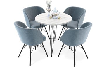 Для совместных трапез - готовый обеденный комплект с удобными стульями. Можно выбрать другие цвета стульев и стола. В комплект входит один стол: - основание SHT-TU10 - столешница SHT-ТT 80 В комплект входит четыре стула: - каркас S37 - сидение ST33 КАЧЕСТВЕННОЕ ИСПОЛНЕНИЕ Столешница выполнена из ЛДСП и покрыта специальной пленкой, которая формирует защитный слой от внешнего воздействия. Безопасная кромка надежно защищает столешницу от сколов. Силуэт с завышенными полукруглыми подлокотниками придает сидению изысканный вид. Благодаря цвету рогожки с нежным синим и серым оттенком – готовое кресло способно преобразить обстановку и добавить стиля! Сидение изысканно смотрится при любом варианте освещения: и естественном, и искусственном. Максимальная нагрузка на одну опору 12,5 кг. ДИЗАЙН И ЭСТЕТИКА Столешница из ЛДСП смотрится аккуратно и привлекательно. Цвет каждой столешницы имитирует текстуру натурального дерева. УХОД Легкий и простой уход за изделием. Запрещено: - ставить горячее без специальных подставок - резать на поверхности без использования доски - использовать на улице под открытым небом, что подвергается прямому воздействию солнечных лучей и осадков -избегать попадания прямых солнечных лучей (открытое окно, балкон, веранда и т.д.) ПРЕКРАСНАЯ ЭРГОНОМИКА. Обращаем внимание на детали, мягкое сидение, отведенная назад спинка с боковинами, отвечают за вашу уютную и эргономичную посадку. ОБИВКА выполнена из микровелюра, в качестве мягкого наполнителя используется поролон. НАДЕЖНЫЙ МЕТАЛЛИЧЕСКИЙ КАРКАС окрашен порошковой краской, устойчивой к механическому воздействию. Максимальная статическая нагрузка - 260 кг. None Есть доставка.