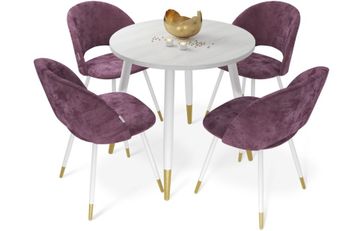 Для совместных трапез - готовый обеденный комплект с удобными стульями. Можно выбрать другие цвета стульев и стола. В комплект входит один стол: - основание SHT-TU14 - столешница SHT-ТT 80 В комплект входит четыре стула: - каркас S129 - сидение ST34 КАЧЕСТВЕННОЕ ИСПОЛНЕНИЕ Столешница выполнена из ЛДСП и покрыта специальной пленкой, которая формирует защитный слой от внешнего воздействия. Безопасная кромка надежно защищает столешницу от сколов. Силуэт с завышенными полукруглыми подлокотниками придает сидению изысканный вид. Благодаря цвету рогожки с нежным синим и серым оттенком – готовое кресло способно преобразить обстановку и добавить стиля! Сидение изысканно смотрится при любом варианте освещения: и естественном, и искусственном. СТИЛЬНЫЙ ДИЗАЙН заключен в красиво очерченном вырезе внизу спинки сидения. Такой элемент придает готовому стулу воздушности и удобство в использовании. Столешница из ЛДСП смотрится аккуратно и привлекательно. Цвет каждой столешницы имитирует текстуру натурального дерева. УХОД Легкий и простой уход за изделием. Запрещено: - ставить горячее без специальных подставок - резать на поверхности без использования доски - использовать на улице под открытым небом, что подвергается прямому воздействию солнечных лучей и осадков -избегать попадания прямых солнечных лучей (открытое окно, балкон, веранда и т.д.) ПРЕКРАСНАЯ ЭРГОНОМИКА сидения с опорами SHT-S129 обеспечивают удобную посадку и комфортное времяпровождение. МЯГКОЕ СИДЕНИЕ сшито из микровелюра. В качестве наполнителя используется поролон. Такое наполнение обеспечит удобную посадку, необходимую для полного расслабления. ПРОЧНОСТЬ И ДОЛГОВЕЧНОСТЬ. Опоры выполнены из металлической трубы диаметром 25 мм. Окрашены порошковой краской, устойчивой к механическому воздействию. Максимальная статическая нагрузка на каркас – 260 кг. Опора выполнена из металлической трубы диаметром 51 мм. Толщина верхнего фланца для крепления столешницы 2 мм. Предусмотрена пластиковая заглушка, эффективно защища
