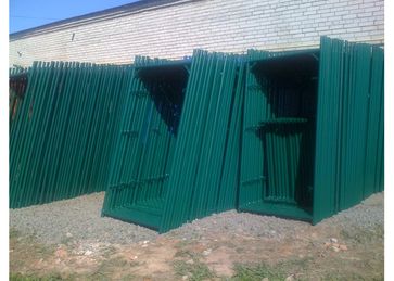 Рамы, с целью устойчивости, связываются между собой горизонтальными и диагональными связями в шахматном порядке со стороны улицы и горизонтальными связями со стороны стены . На рамах предусмотрены замки с фиксатором для крепления диагональных и горизонтальных связей.