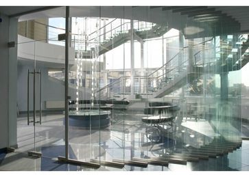 Стеклянные перегородки изготавливаются из закаленного стекла толщиной 8-10 мм. Такое стекло очень прочное и безопасное. При разрушении оно не разбивается на тысячи острых осколков, а распадается на осколки с тупыми гладкими краями.