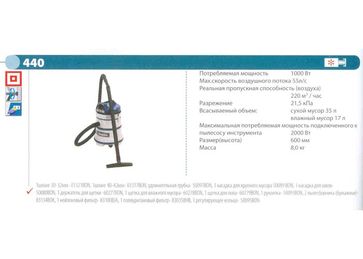- Пылесос строительный MAKITA 440 (1000Вт, 220мкуб час, 35 л, 8.0 кг) по выгодной цене 9 900 р. руб.;
