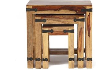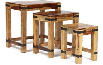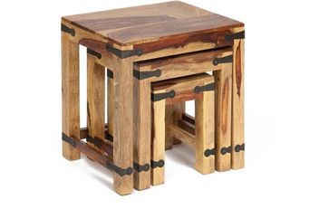 Стильный комплект из трех небольших табуреток/столиков из коллекции BOMBAY - – это идеальное решение не только для просторных помещений, но и для небольших комнат. Практичность, удобство и простота выгодно выделяют комплект в интерьере. Столики можно поставить отдельно, использовать, как низкие табуреты, или разместить один под другим для экономии места в небольшом пространстве. Винтажная фурнитура из черного металла, разнообразие текстуры и уникальных оттенков древесины палисандра позволяют создать неповторимый облик изделия. Массив палисандра, обработанный прозрачным лаком, обладает повышенной прочностью, долговечностью, не требует специального ухода и будет долгое время радовать вас своим первоначальным видом. Модель прекрасно сочетается с мебелью из коллекции BOMBAY, поставляется в собранном виде. Размеры (Ш x Г x В): 45х45х30 / 38х36х27 / 31х27х25 см Страна-производитель: Индия None Страна производства: ИНДИЯ Есть доставка.
