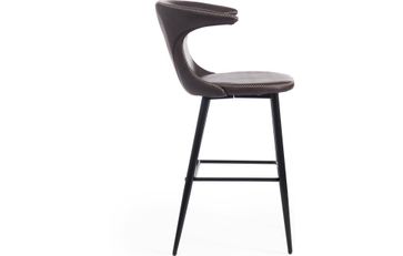 Оригинальный дизайн барного стула FLAIR BAR из коллекции Modern позволит привлечь внимание и сделать яркий акцентв вашем интерьере. Стул способен придать индивидуальность пространству, выделить его из сотен обыденных и привычных стульев. Оригинальная форма спинки, черные металлические ножки и обивка из коричневой экокожи с красивой отделочной строчкой подчеркив ают неповторимый облик изделия. Удобная форма спинки, мягкое сиденье и подставка для ног обеспечат комфорт на протяжении длительного времени. Экокожа не мнётся, не меняет форму, проста в уходе. Металлический каркас отличается прочностью, устойчивостью к износу и долговечностью. Стул не требует специального ухода и будет долгое время радовать вас своим первоначальным видом. Стул хорошо подойдет для гостиной, для кухни, для бара, для ресторана или для кафе. Стул очень прост в сборке, инструкция по сборке прилагается. Страна-производитель: Китай None Страна производства: КИТАЙ Есть доставка.