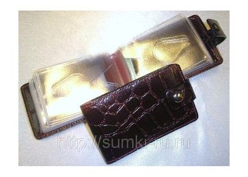 Кредитница альбомная на кнопке из натуральной кожи. Оптом. Общая сумма заказа от 12000 руб. Доставка по России любой Т.К. Футляр для дисконтных и кредитных карт на кнопке. Лист на 1 визитку. Внутри карманы из кожи. Пластиковый блок на 18 карточек с выемкой под палец Материал: натуральная кожа Цвета: 10 - черный 16 - коричневый «крокодил» 20 - коричневый 26 - средне коричневый «крокодил» 50 - красный 59 - красный «крокодил» предоплата, мин. партия товара 5 шт. Возможен самовывоз. Есть доставка.