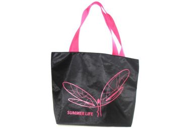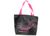 Цвет черный. Розовый принт и розовые ручки. Карман внутри на молнии. Материал пвх 420.