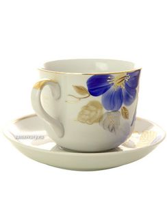 - Фарфоровая чашка с блюдцем форма "Ностальгия" рисунок "Синий цветок", Дулевский фарфор по выгодной цене 890 р. руб.;