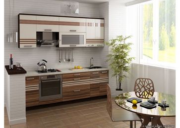 Кухня Рио 16 - 2 2400мм Корпус Венге Фасады МДФ Жемчуг глянец (со вставкой)/Зебрано глянец Столешница Берилл бежевый Возможно изменение композиции, приобретение по отдельным предметам