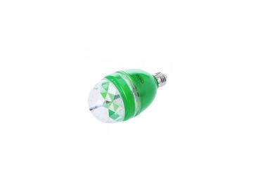 Светодиодная лампа в стандартный цоколь E27. Имеет разноцветное свечение, которое обеспечивается тремя основными цветами - RGB. Управляется как при помощи пульта ДУ, так и и звуком. Основое применение - системы подсветки для дискотек, салонов, баров, ресторанов итд. Характеристики Экономичное энергопотреблениеНапряжение питания 220В Пульт ДУ в комплектеПотребляемая мощность 3ВтЦоколь Е27 Основные режимы 1. Вкрутите лампу в цоколь, - она начнет работать в режиме 1: постоянно включена и вращается автоматически, при появлении звука - дополнительно вспхивать. 2. При нажатии на кнопку Control - переходит в режим 2: Лампа включена, но не вращается и не мерцает. При появлении звука - начинает вращаться, но не мерцает 3. При втором нажатии на кнопку Control - лампа переходит в режим 3: Лампа включена постоянно, но не вращается и не мерцает = вне зависимости есть звук или нет. 4. При следующем нажати на клавишу Control - лампа выключается Особенности Пульт дистанционного управления 16 вариантов цветового излучения Принимаем WebMoney, QIWI и Yandex-деньги без %