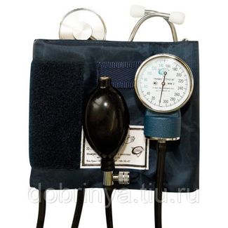 используется для измерения систолического (верхнего) и диастолического (нижнего) артериального давления косвенным методом в момент появления и исчезновения тонов Короткова. имеет нейлоновую манжету со скобой с латексной пневмокамерой; оснащен пневматическим нагнетателем с центральным клапаном, металлическим манометром и фонендоскопом с пластиковой головкой; прибор упакован в футляр из синтетической ткани и картонную кробку.