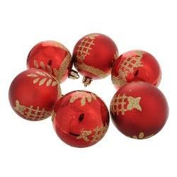 Magic-Time Набор шаров красный с золотым узором, 6 штук, пластик (35513)
