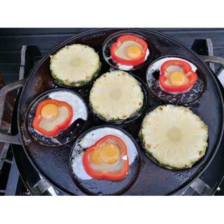 Многофункциональная сковорода чугунная Muurikka 42 см с 7-ю круглыми формами. Сковорода Muurikka идеально подходит для открытого огня, газовых горелок Muurikka и электрогриля Muurikka.