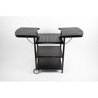 Стол тележка для барбекю Muurikka изготовлен из металла и лакированной сосны, также имеет колеса для передвижения. Удобные полки для хранения аксессуаров и принадлежностей (сковороды, коптильни ...). Боковые полки - складные. Дополнительно может поставляться с водонепроницаемым чехлом.
