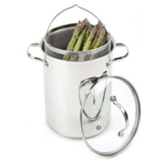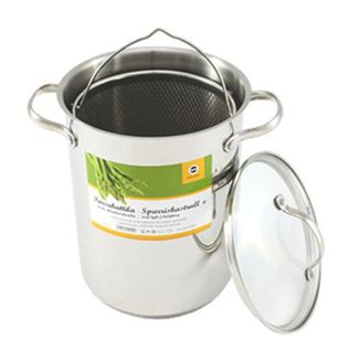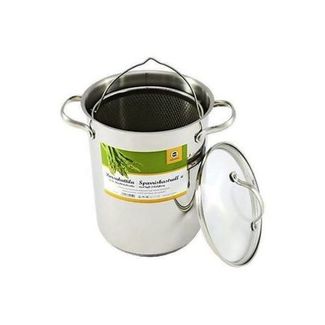 Кастрюля изготовлена из высококачественной нержавеющей стали, со стеклянной крышкой, имеет корзину с ручкой (сетка), которая вставляется внутрь основной кастрюли.