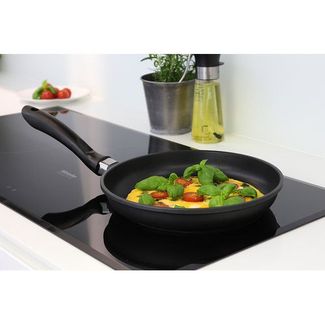 Cковороды серии Arkiизготовленыиз прочноголитого алюминия(посуда из литого алюминия)по свойствам аналогичначугуну,так же быстро нагревается и надолго сохраняет тепло, но значительно легче, имеет качественное 2-х слойное антипригарное покрытие, которое легко очищается и при приготовлении требует меньше масла.