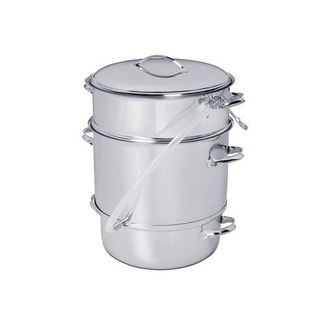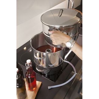 Изготовленные изнержавеющей стали18/10, части соковарки плотно вставляются одна в другую. Благодаря емкойсоковарочной части, сок не протекает в ее водную часть. Толстое днище более 10 ммобеспечиваетравномерное и эффективное потребление энергии.Крышка соковаркиMehu-Liisaподходит и для нижней водоварочной части, благодаря чемуее можно использовать отдельно для всякого рода варки подобно обычной кастрюле.
