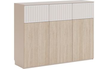 Эксклюзивный комод Беатрис выполнен в цвете палермо с тиснением натурального матового дерева и украшен вставками из МДФ в цвете латте с матовой приятной текстурой. Имеет надежные комплектующие европейских производителей, что гарантирует долгой службы службы изделия. Оснащен 3-мя ящиками и 3-мя секциями за дверцами, благодаря чему Вы с легкостью разместите вещи в сложенном виде.
