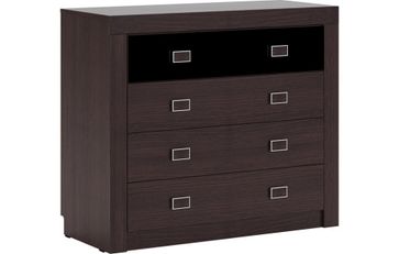 Вместительный комод с 4-мя ящиками идеален для хранения вещей в сложенном виде. Текстиль, белье, личные вещи - для всего найдется свое место. Безусловным украшением комода выступает наружная фурнитура - миниатюрные ручки геометрической формы.