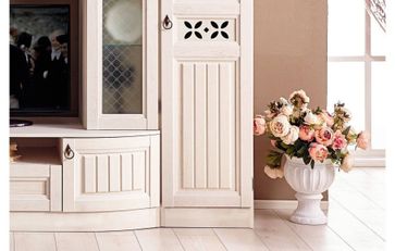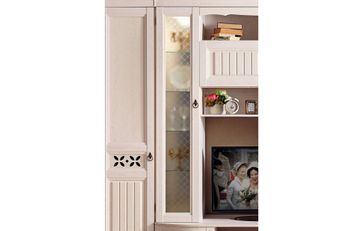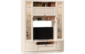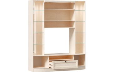 • По центру: открытые полки и ниша без полок за дверью на газовом лифте. • Внизу 1 ящик. Размер фасада ящика – 824х222 мм • Максимальная нагрузка на полку – 15 кг, на ящик – 25 кг. • Над ящиком открытая ниша. Задняя стенка ЛДСП с отверстиями и заглушками. • Справа и слева за распашными стеклянными дверьми по 4 стеклополки (толщина 4 мм). • В верхний горизонт встроена подсветка в виде точечных светильников. • Макс. нагрузка на стеклополку – 8 кг. • Внизу справа и слева за распашными дверьми вместительные ниши. • Ниша под телевизор 1064х855 мм. • Столешница под ТВ на высоте 495 мм от пола. • Максимальная диагональ ТВ – 46 Дюймов. • Цоколь гнутый в комплекте. • Карниз и соединители являются обязательными элементами и заказываются отдельно. • Тумба ТВ может комплектоваться корпусом шкафа ЛД 642.670 М или шкафами ЛД 642.250, ЛД 642.240, ЛД 642.230, ЛД 642.560 через переходный модуль - шкаф ЛД 642.670М. Комплектация с другими шкафами не возможна. None