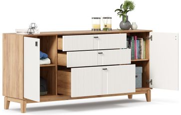• На опорной нижней горизонтальной стенке крепятся опоры ППУ. • По центу три выдвижных ящика друг над другом на шариковых направляющих нижнего крепления не полного выдвижения с доводчиком. • Максимальная нагрузка на ящик – 15 кг. • Размер фасада верхних двух ящиков - 878х171 мм, Размер фасада нижнего ящика - 878х318 мм. • Слева и справа за распашными дверями ниши с одной полкой. • Тумбу рекомендуется прикрепить к стене с помощью угловой подвески, подвеска в комплекте. • Крепеж к стене приобретается дополнительно. None