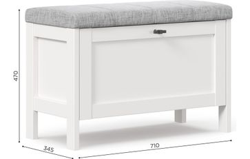 • Сиденье мягкое (наполнение поролон). Обито тканью. • Внизу отделение за откидной дверью. • Максимальная нагрузка на короб для хранения – 10 кг. • Тумба установлена на опорные вертикальные рамы, выполняющие функцию опор. • Высота опор 100 мм. • Максимальная нагрузка на банкетку до 100 кг. None