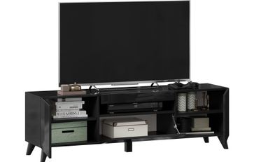 • В центре за декоративной планкой открытая ниша для техники. Размер ниши 600х135 мм. Высота планки 70 мм. • Для вывода проводов есть отверстие в задней стенке. • Внизу отделение за дверью на откидном кронштейне. Размер фасада 588х211 мм. • Справа и слева за распашными дверями ниши, в каждой по 1 полке. Размер двери 452х360 мм. • Открывание дверей осуществляется непосредственно за саму дверь. Средняя дверь выступает на 5 мм сверху, боковые двери выступают справа и слева соответственно. • Нагрузка на полку - 7 кг. Нагрузка на весь модуль - 45 кг. • Тумбу можно установить на опоры ЛД 685.011. • Тумба крепится к стене с помощью угловой подвески. Подвеска в комплекте. • Крепеж для подвески к стене приобретается дополнительно. • Корпус: ЛДСП 16 мм, цвет «Черный». Видимые части корпуса - лак, глянец • Фасады: ЛДСП 16 мм, цвет «Черный» лак, глянец. • Опоры ППУ: в цвет корпуса. None