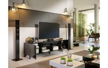 Закажите Алмаз. Любимый дом Бруклин Тумба под ТВ 1800 с опорами (Черный глянец) у компании NON STOP Мебель в Санкт-Петербурге на портале Alloy: