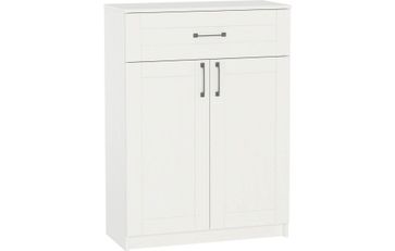 • Вверху 1 ящик на шариковых направляющих бокового крепления с неполным выдвижением. • Размер фасада ящика - 792х218 мм. • Максимальная нагрузка на ящик - 25 кг. • Максимальная нагрузка на крышку тумбы - 15 кг. • Внизу за распашными дверями две переставные полки. Размер двери 395х699 мм. • Максимальная нагрузка на ЛДСП полку - 15 кг. • Комод крепится к стене с помощью угловой подвески. Подвеска в комплекте. • Крепление для подвески к стене приобретается дополнительно. None