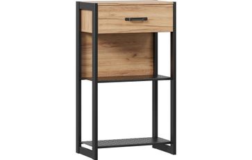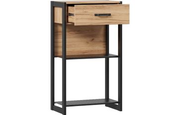 • Вверху 1 ящик на шариковых направляющих полного выдвижения. • Размер фасада ящика 558х188 мм. • Под ящиком две металлические перфорированные полки. • Максимальная нагрузка на ящик – до 15 кг. • Максимальная нагрузка на металлическую полку - до 3 кг. • Тумба установлена на опорные вертикальные рамы, выполняющие функцию опор. • Просвет под тумбой (от нижнего горизонта до пола) 68 мм. None