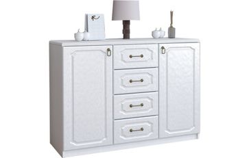 Комод с четырьмя выдвижными ящиками и двумя закрытыми нишами с полками внутри - удобная и полноценная система хранения, идеально подходящая для любого помещения: спальни, гостиной, рабочего кабинета, детской. В нём можно хранить текстиль, постельные принадлежности, нижнее бельё, косметику, документы, детские игрушки, а столешницу использовать как функциональную полку для приятных мелочей: статуэток, красивых ваз, светильника, семейных фотографий. None Страна производства: Россия Есть доставка.