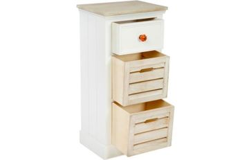 Комод с тремя ящиками. Каркас комода, верхняя панель, ящики изготовлены из дерева. Изящный и достаточно вместительный комод с интересным "уютным" дизайном. Упакован в картонную коробку. Комод прост в уходе. При загрязнении достаточно просто протереть влажной тряпочкой. None Страна производства: КИТАЙ Есть доставка.