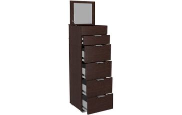 Комод Наоми-6 оснащен пятью выдвижными ящиками и отсеком с откидной крышкой с амортизатором для фиксации, откидная крышка комода оснащена зеркалом. Комод очень удобен, так как не занимает много места и совмещает в себе функции комода и трюмо. None Страна производства: Россия