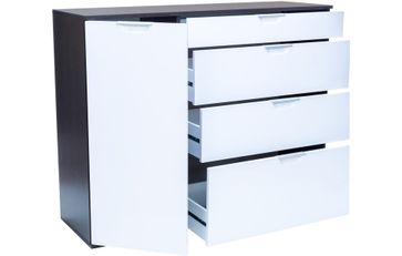 Комод Никас-3 современный, стильный и функциональный. Все фасады из МДФ плиты пакуются отдельно от корпуса, благодаря чему глянцевые поверхности не царапаются и не теряют товарный вид. None Страна производства: Россия