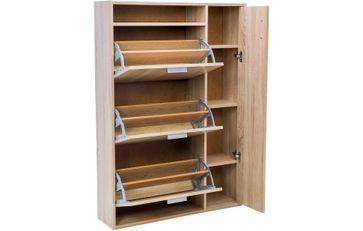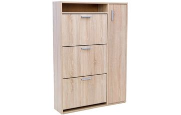 Много обуви и всегда не знаете куда ее спрятать?! Обувница решит эту проблему. Эта модель оснащена тремя отделениями для хранения обуви. Очень скромные габариты изделия, при этом вместимость обувницы - более 10 пар. Дополнительное место для хранения мелочей и аксессуаров для ухода за обувью. None Страна производства: Россия