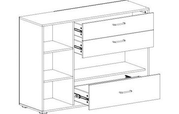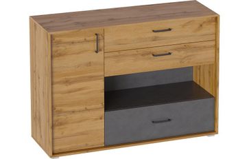 Рэми Комод 3 ящика — многофункциональная модель с 3 ящиками на шариковых направляющих, нишей и отделением с 2 полками за распашной дверью. Материал корпуса и фасада ЛДСП, цветовое решение Дуб Вотан / Металл Бруклин. None Страна производства: Россия Есть доставка.