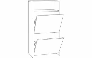 Модель имеет две откидные секции для обуви и открытую полочку.