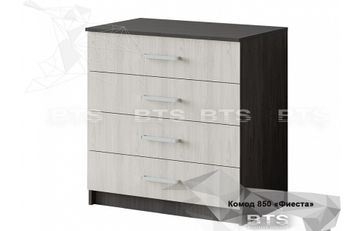 Фиеста комод 850 — широкий вместительный комод с четырьмя выдвижными ящиками. С ним все вещи будут разложены по своим местам, а в комнате будет царить идеальный порядок. Комод сделан в контрастных оттенках и оформлен удобными широкими ручками. Он найдет свое место и будет полезен в детской или молодежной комнате, прихожей, спальне и гостиной. None Есть доставка.