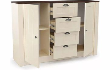Модель оборудована широкой столешницей, слева и справа секции с полками и дверцами, по центру 4 выдвижных ящика. None Страна производства: Россия Есть доставка.