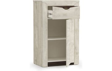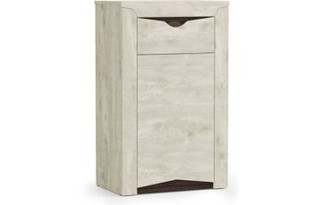 Модель имеет выдвижной ящик и секцию с глухой распашной дверцей.
