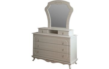 Комод 06.115 Кантри патина вудлайн кремовый/сандал белый - яркий предмет интерьера спальной комнаты.