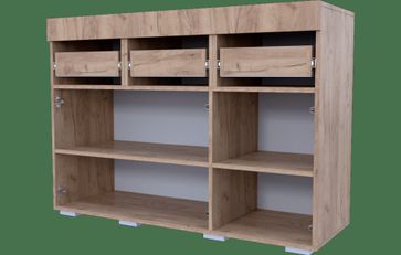 Оризона NEW Комод — модель с 3 выдвижными ящиками (используются направляющие полного выдвижения) и 3 секциями за распашными дверьми. Материал ЛДСП. None Страна производства: Россия Есть доставка.