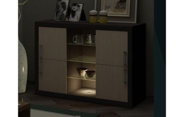 Комод Берк-9 — оборудован 5 отделениями. Боковые имеют 1 полку ЛДСП и распашную дверцу каждое, центральное укомплектовано 3 стеклянными полками и подсветкой. Комод выполнен из ЛДСП. Использовано гармоничное сочетание контрастных цветов. Эта оригинальная модель будет органично смотреться в квартире современного дизайна. None Страна производства: Россия Есть доставка.