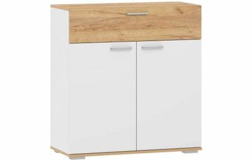 Конструкция с 2-я распашными глухими дверцами и широким выдвижным ящиком.