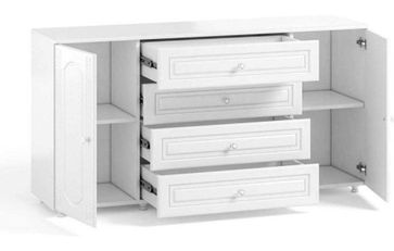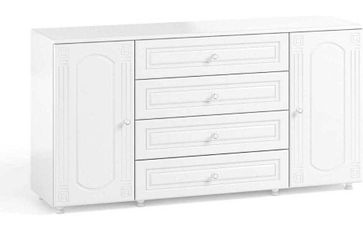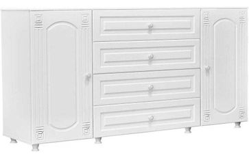 Тумба Афина АФ-20 белое дерево - комбинированное решение для интерьера жилой комнаты. Модель предназначена для хранения одежды и предметов быта, также может использоваться для размещения большого телевизора.. В центре 4-е вместительных выдвижных ящика. Слева и справа секции с глухими распашными дверцами. None Есть доставка.