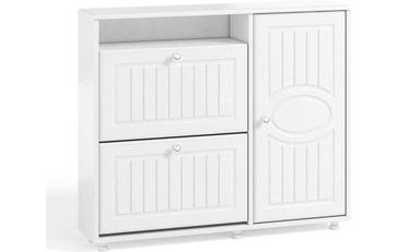 Тумба под обувь 2-х секционная с дверью Монако МН-24 белое дерево станет функциональным дополнением интерьера прихожей комнаты. Модель оснащается открытой полкой, 2-я откидными секциями для обуви и отделением с глухой распашной дверцей. None Есть доставка.