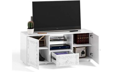 Тумба под ТВ Италия ИТ-25 белое дерево станет неотъемлемой частью интерьера гостиной комнаты. Модель оснащается 2-я открытыми полками для техники и выдвижным ящиком для мелочей в центре. Слева и справа расположены отделения с глухими распашными дверцами. None Есть доставка.